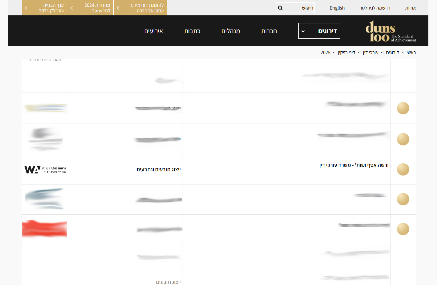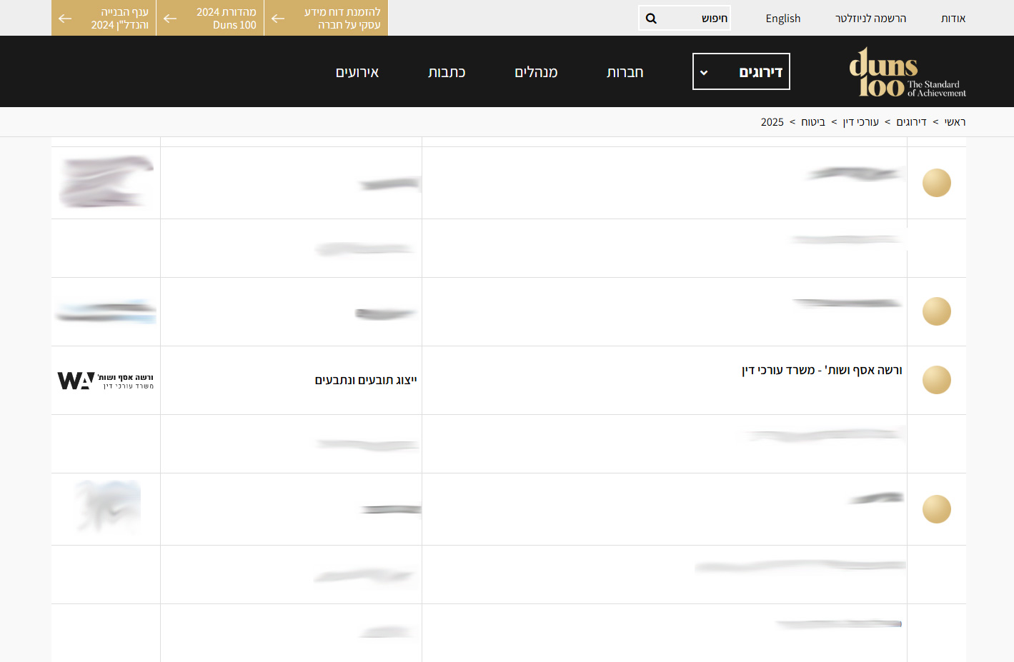 דירוג DUN'S 100 של משרדי עורכי הדין המובילים בישראל לפי תחומי התמחות לשנת 2024!